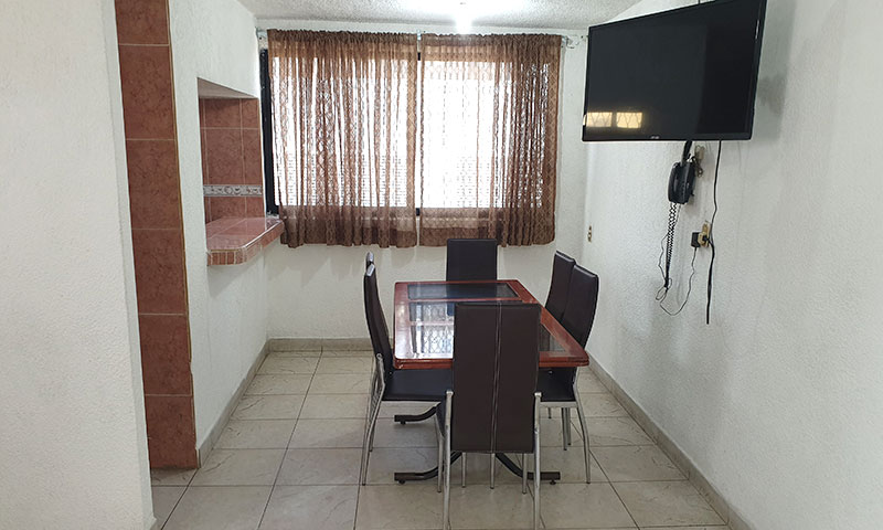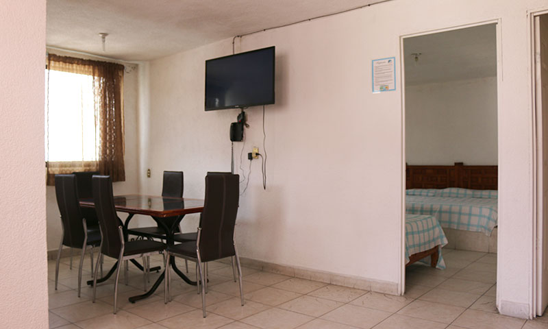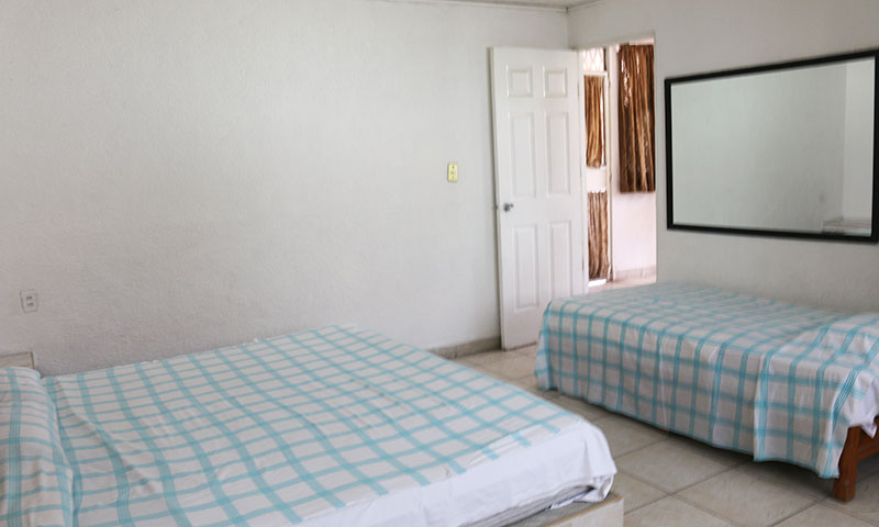 En el 2do. piso. Capacidad hasta 7 personas. Dos recámaras. Una recámara con cama Kingsize y una individual; Otra recámara con una cama doble y una individual. Cada recámara con baño. Sala, comedor, T.V., cocineta, Aire Acondicionado en sala y recámara.