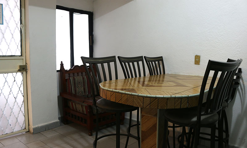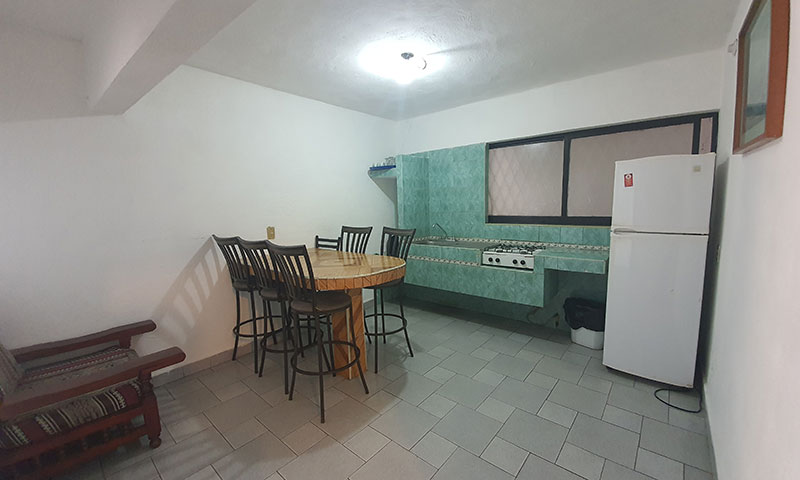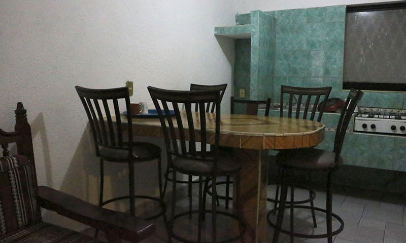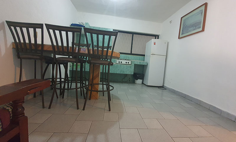 En planta baja. Capacidad hasta 6 personas. Una habitación dividida. 3 camas dobles. Baño, Aire Acondicionado, T.V. y cocina.